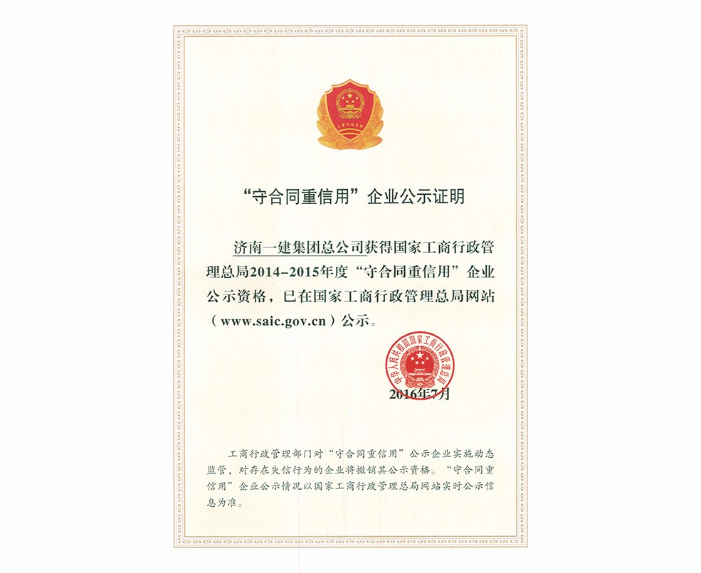 全国守合同重信用企业